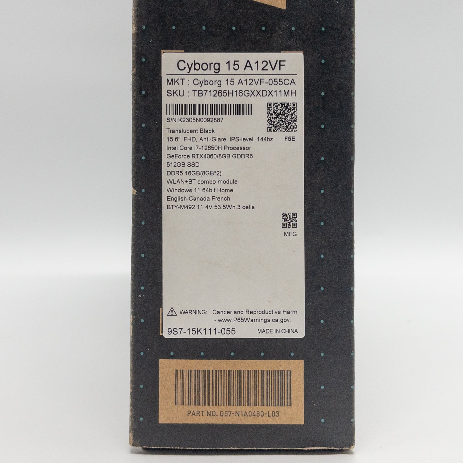 MSI Cyborg 15 A12VF 15.6" i7-12650H 16GB RAM 512GB SSD RTX 4060 Read Screen
